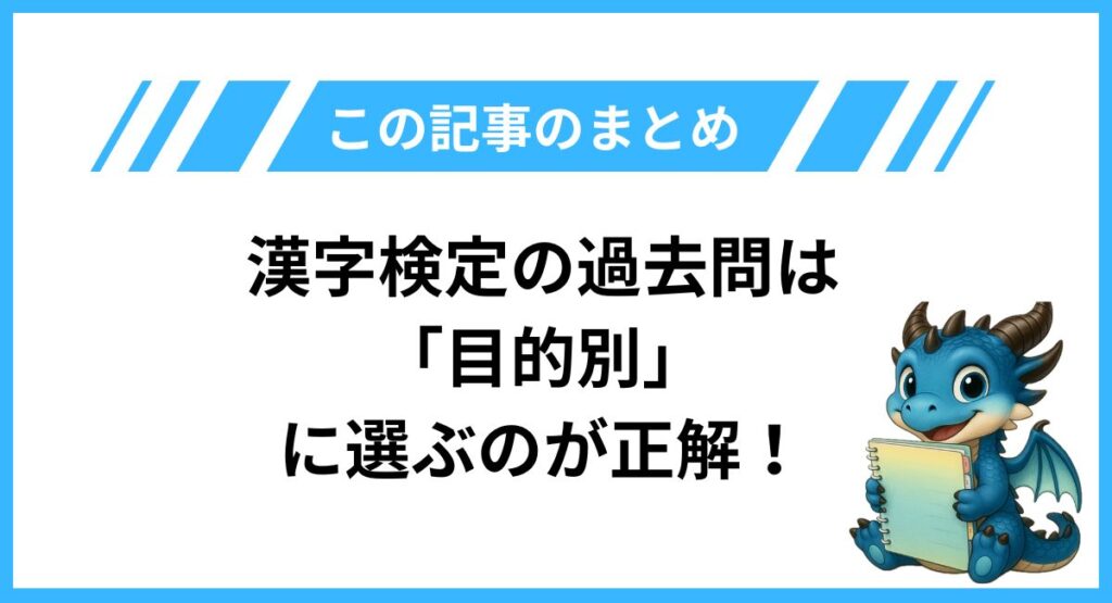 まとめ:漢字検定の過去問は「目的別」に選ぶのが正解