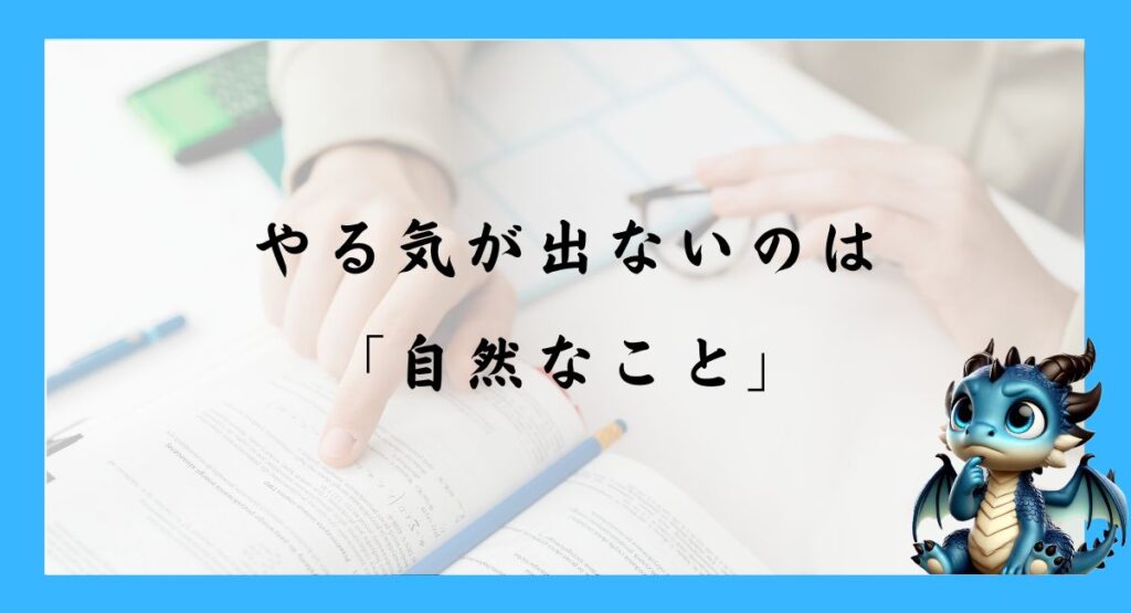 つまり、やる気が出ないのは誰にでも起こる、正常な反応なのです。